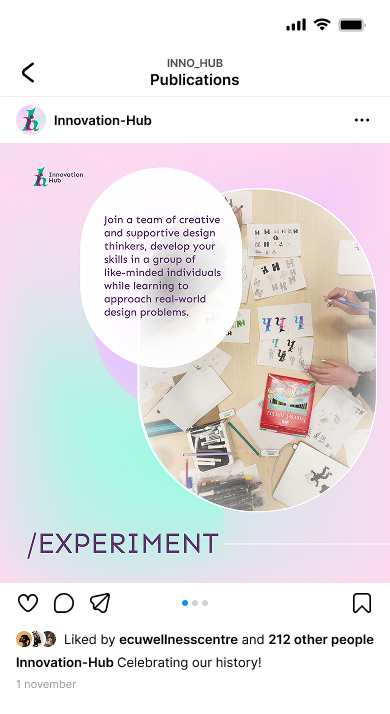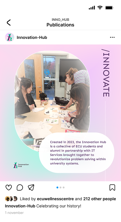 The Innovation Hub is an Emily Carr University affiliated organization made up of alumni and current students of the Bachelor of Design. It was created to bring together design-focused minds in the hopes of addressing complex issues within the digital ecosystem of the university.