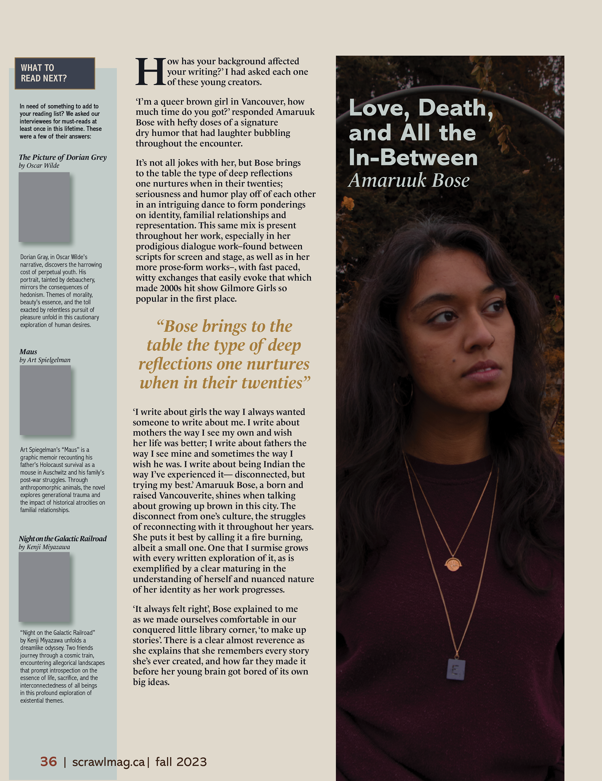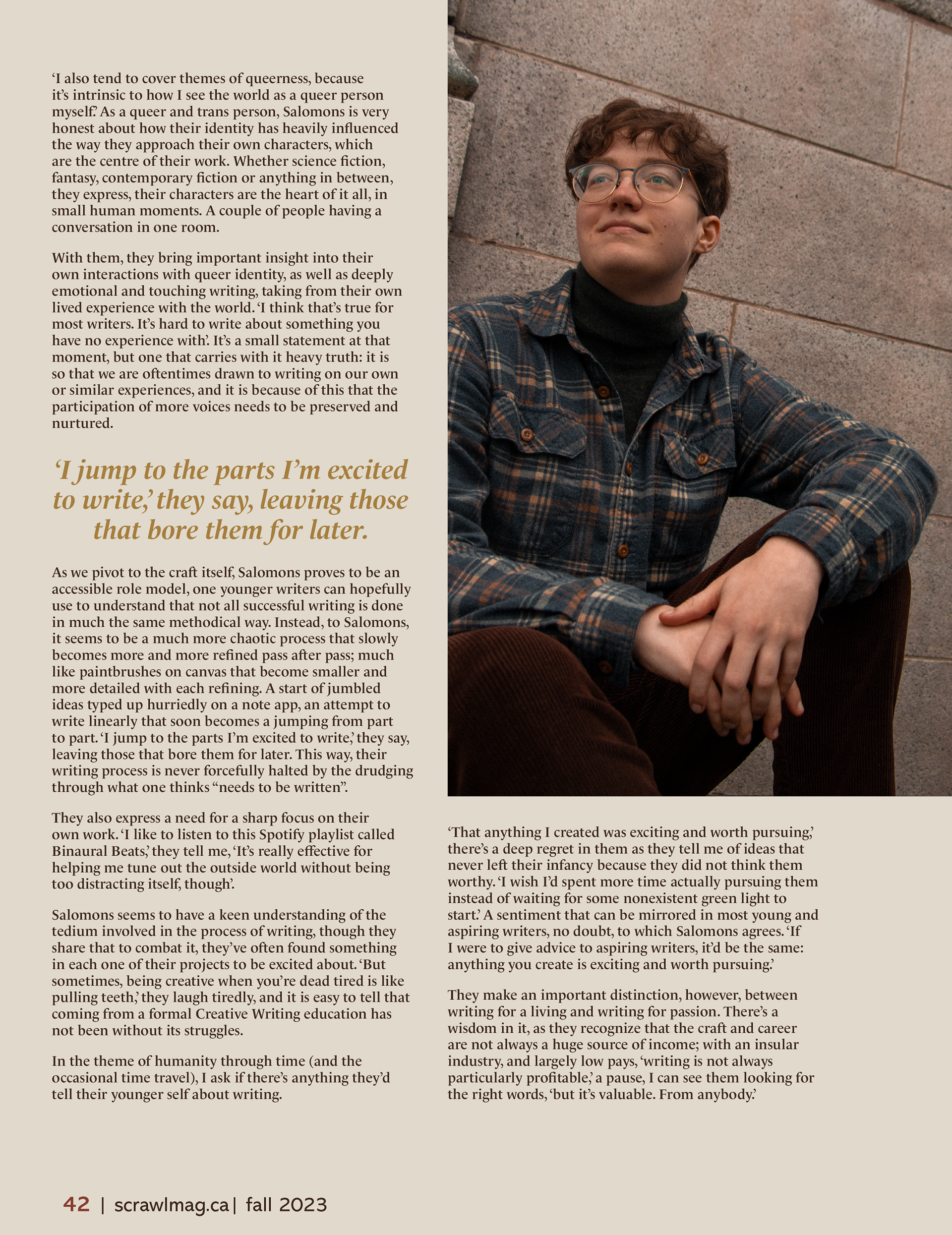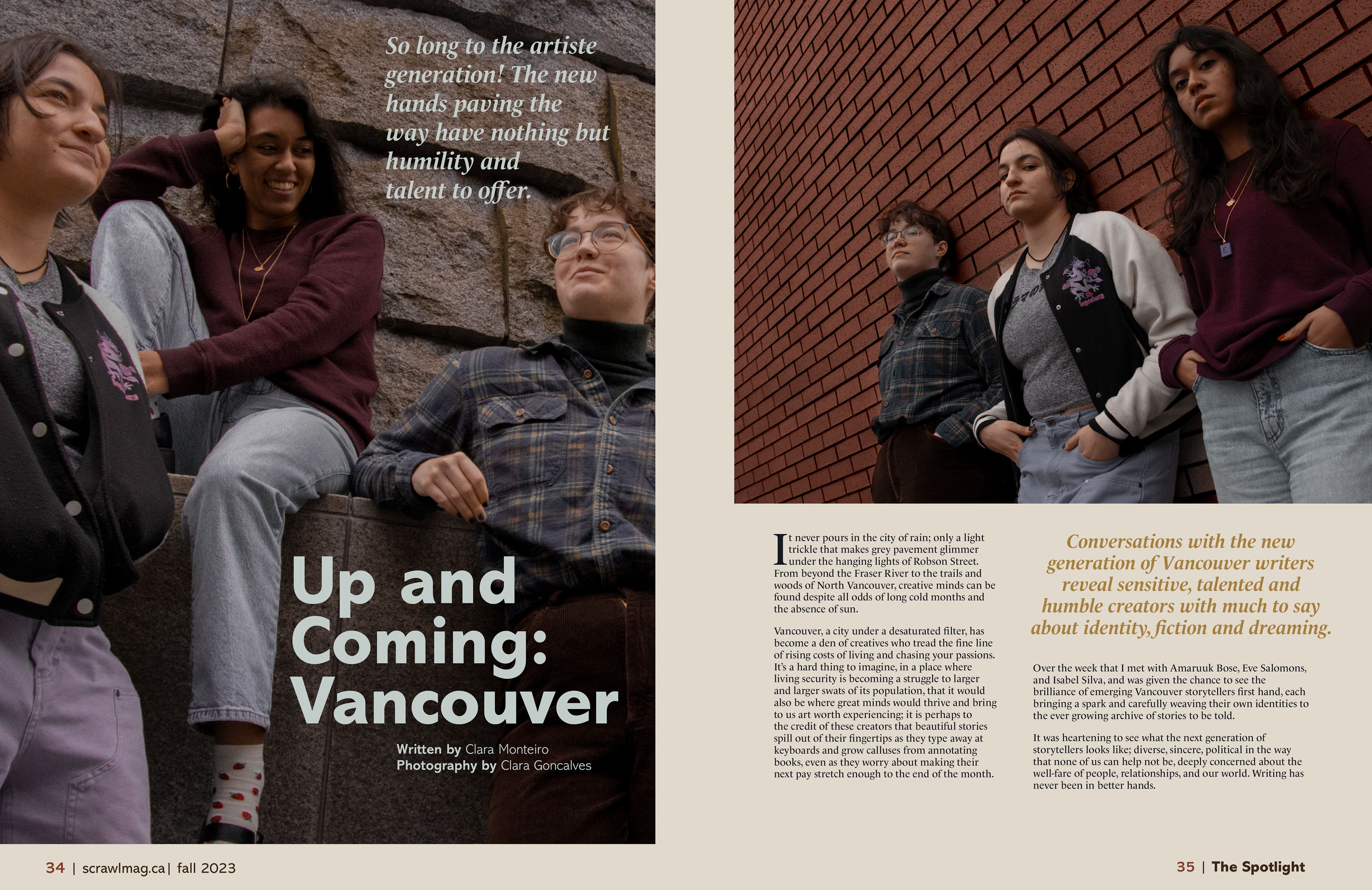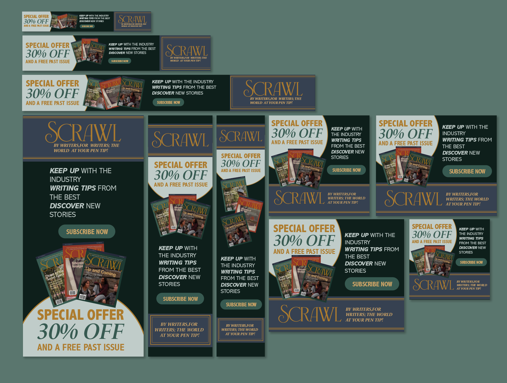With that understanding, the conceptual approach of this publication was largely based on British academia aesthetic conventions that mirrored traditional publishing with a modern twist in a way that would resonate with Scrawl’s primary demographic of early to mid 20s adults. This meant a liberal use of serifs and a dark, moody palette