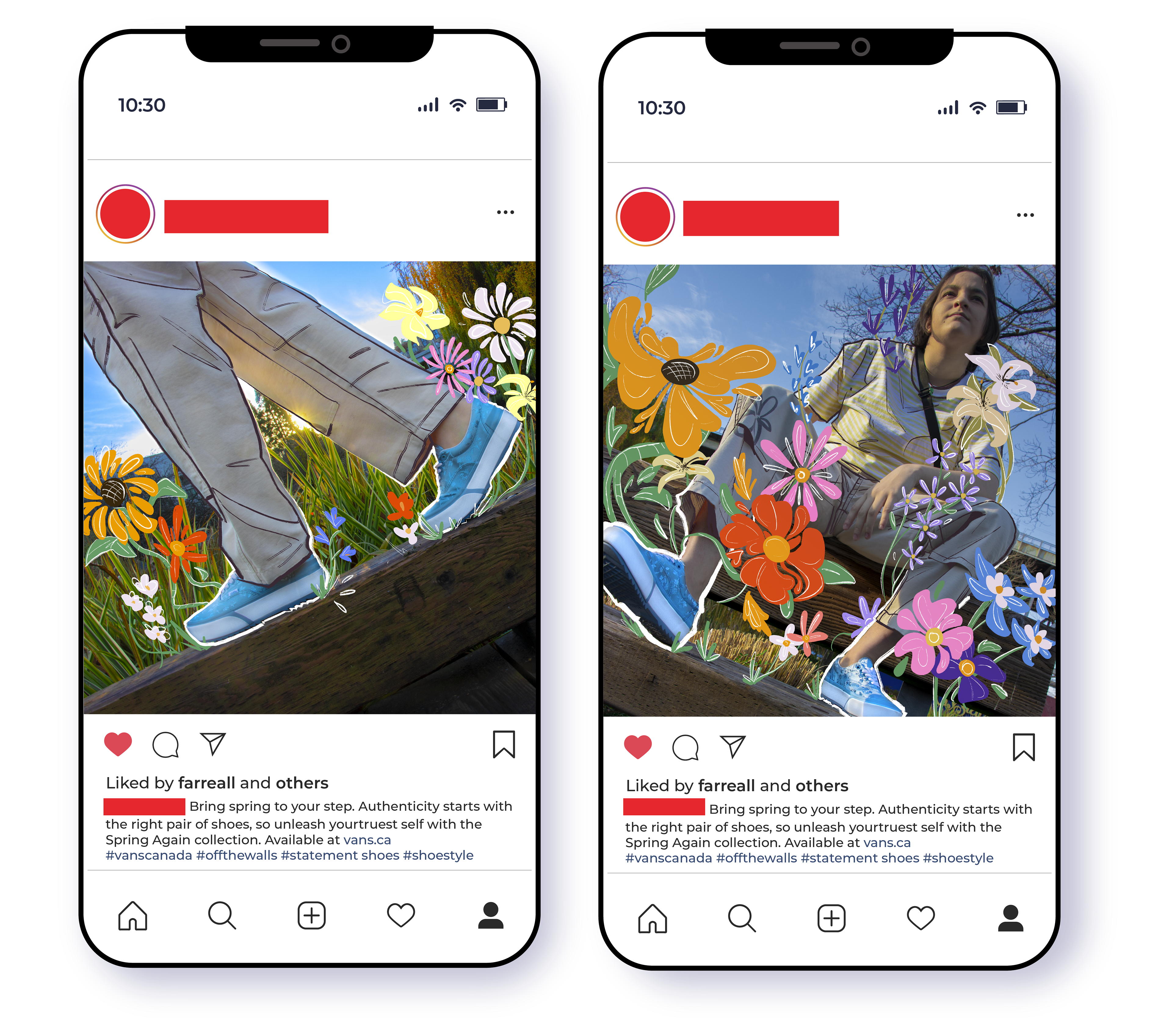Spring Again is a fictional marketing campaign for unique Vans shoes. The personal and casual photography, meant to mirror Vans' own dynamic photographic style, is enhanced by the cartoon style illustration bringing a spark of imagination and fun to this spring collection.